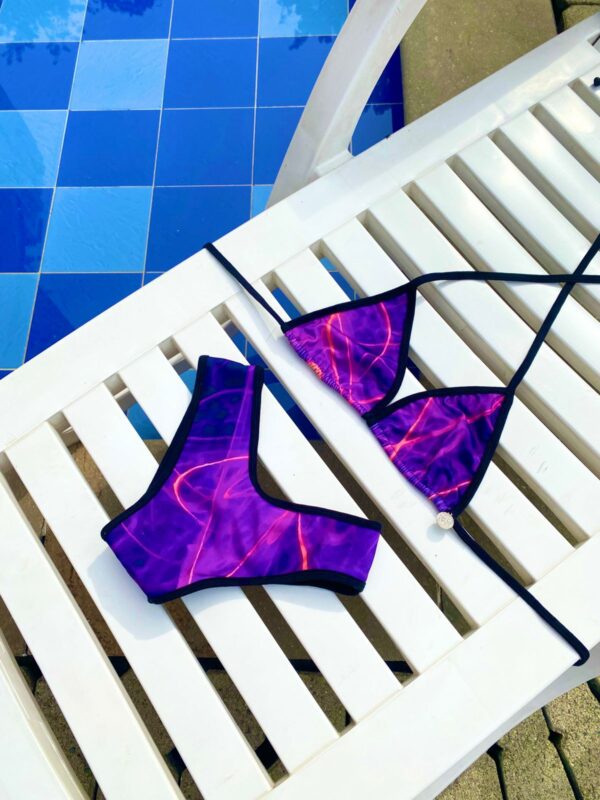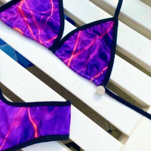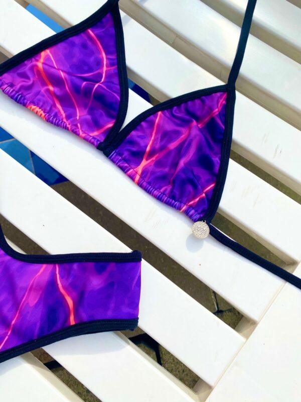 Déjate envolver por la energía magnética del BIKINI ELECTRA 💜⚡️, un diseño que combina poder, sensualidad y estilo único. Su estampado en tonos morados con destellos eléctricos 🔥💫 refleja la fuerza de una mujer segura de sí misma, lista para brillar bajo el sol o en la noche junto al mar. 🌙✨